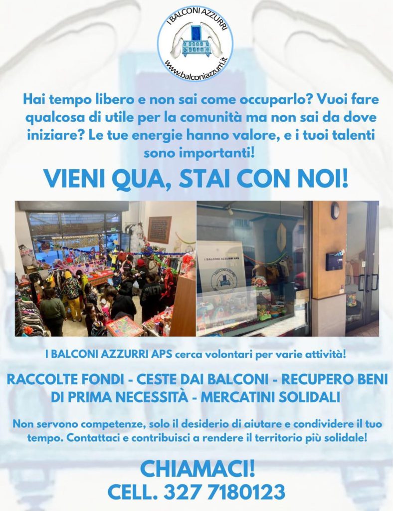 Se hai tempo e non vuoi passarlo in solitudine, “Vieni qua, stai con noi”, puoi contattarci per saperne di più sulle opportunità di volontariato disponibili nelle nostre sedi.
